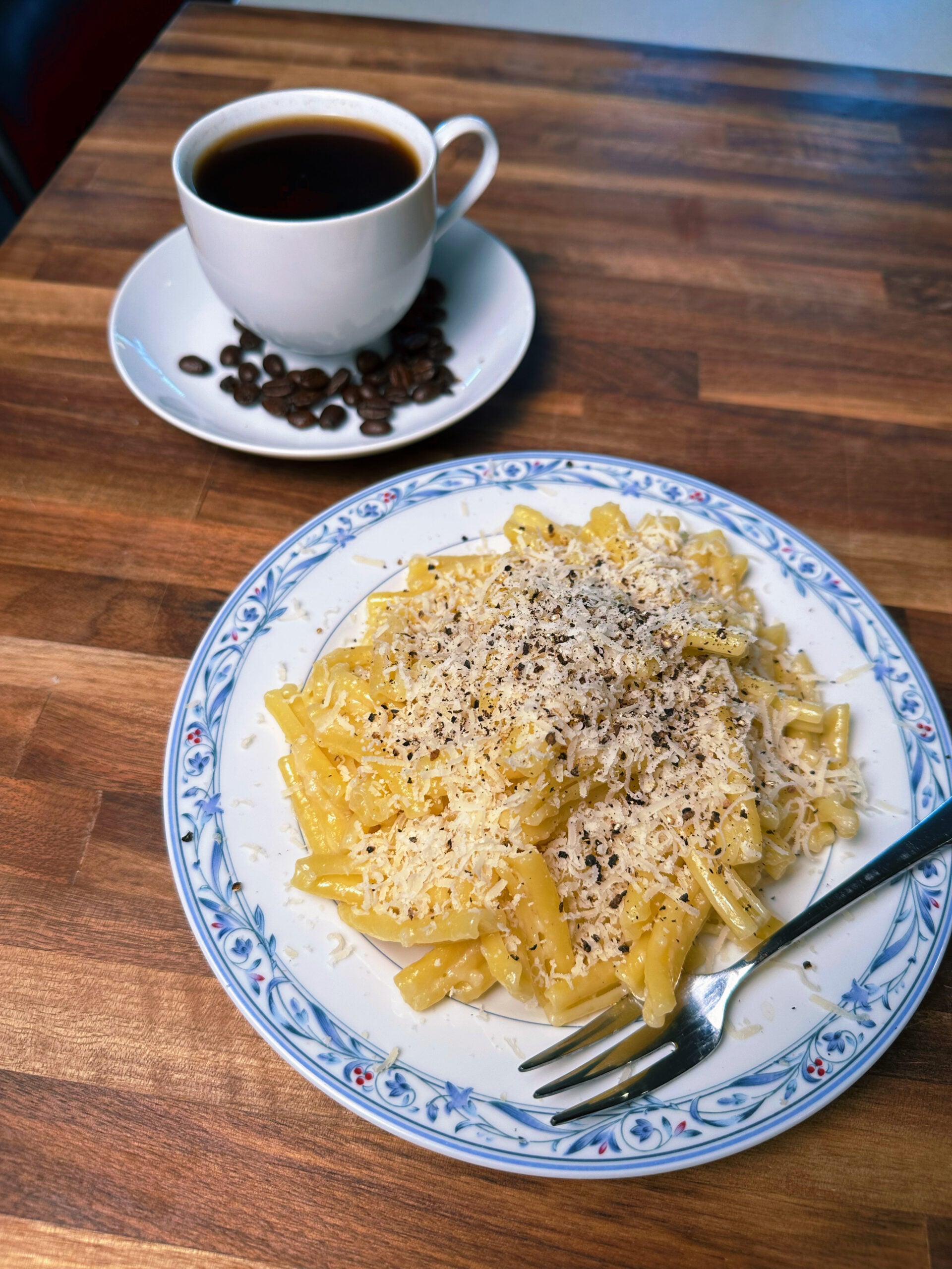 - Finish and serve: Crack 1 teaspoons black pepper, freshly cracked generously over the top. Heap onto a plate and pile on the remaining Parmesan. Eat it immediately with whatever is left of the coffee alongside it. This is the meal Beethoven ate while going deaf and writing the Ninth Symphony. Make of that what you will.