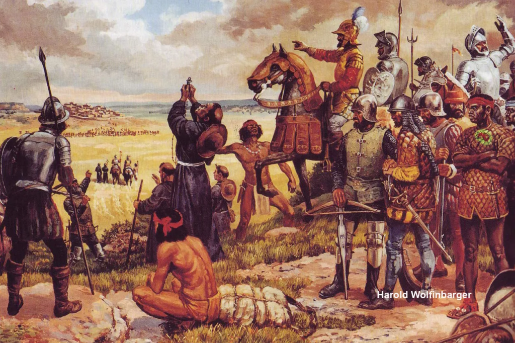 The contact that followed was devastating. The Spanish took what they needed. When Pueblo communities resisted, Coronado burned villages and executed resisters. The winter of 1540 to 1541 saw scattered fighting across New Mexico as the Spanish demanded food, clothing, and shelter and took it by force when it was not freely given. The expedition that came looking for gold left having consumed the food stores of dozens of Pueblo communities and killed an untold number of their inhabitants.