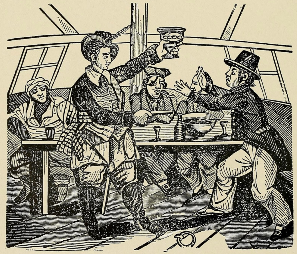 William Dampier notes the frequent mixing of rum with water and citrus among buccaneers in the late seventeenth century. Water stored in barrels spoiled quickly. Rum did not. Dilution extended supplies and made water safer to drink. Citrus, when available, improved taste and health.