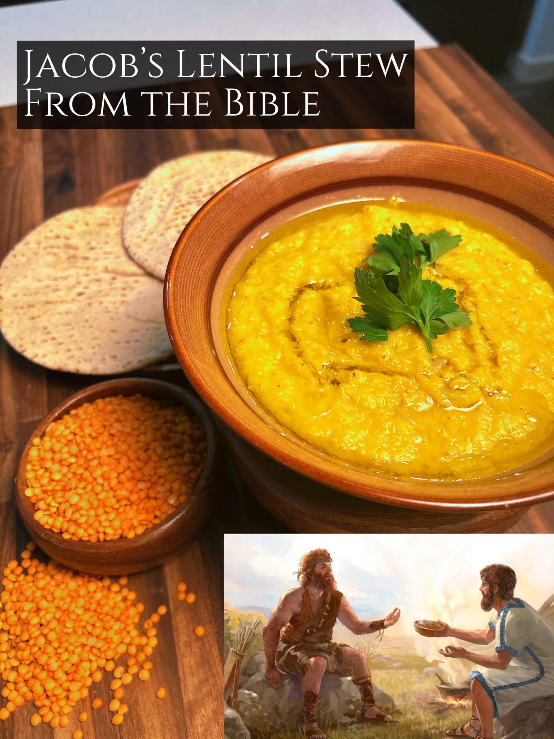 - Serving style: Serve with flatbread or barley cakes, as Jacob and Esau would have eaten, and finish with a drizzle of olive oil to honor the flavors of the ancient Near East.
