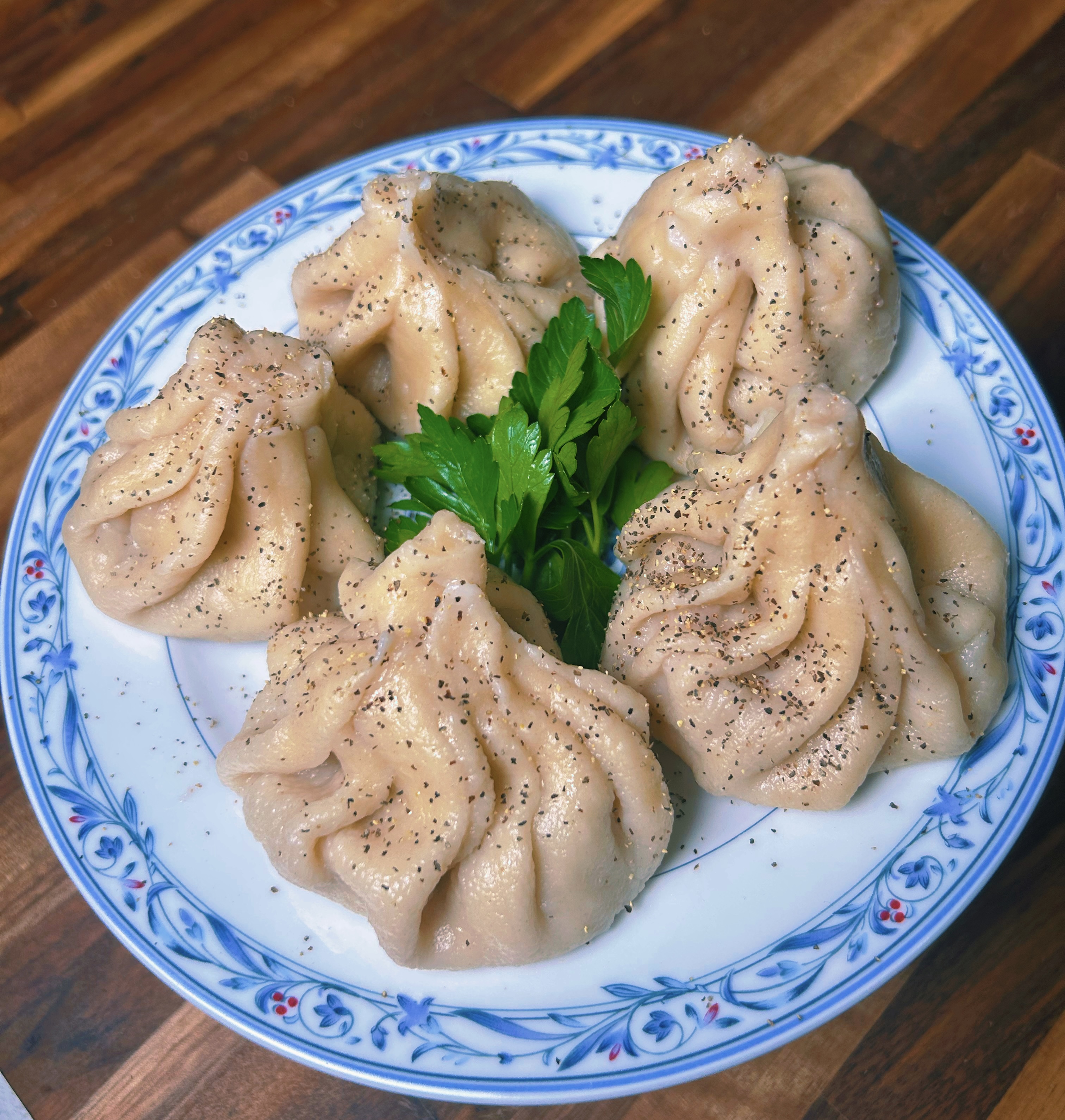 When I recreated khinkali for Eats History, it quickly became one of my favorite dishes I’ve ever made. The first bite is unlike any other dumpling. The soft dough gives way to a burst of savory broth infused with pepper, garlic, and meat. It’s both rich and clean, hearty but balanced. The filling of spiced beef and pork creates a deep flavor, while the dough absorbs just enough of the juices to give each bite a smooth, comforting texture.