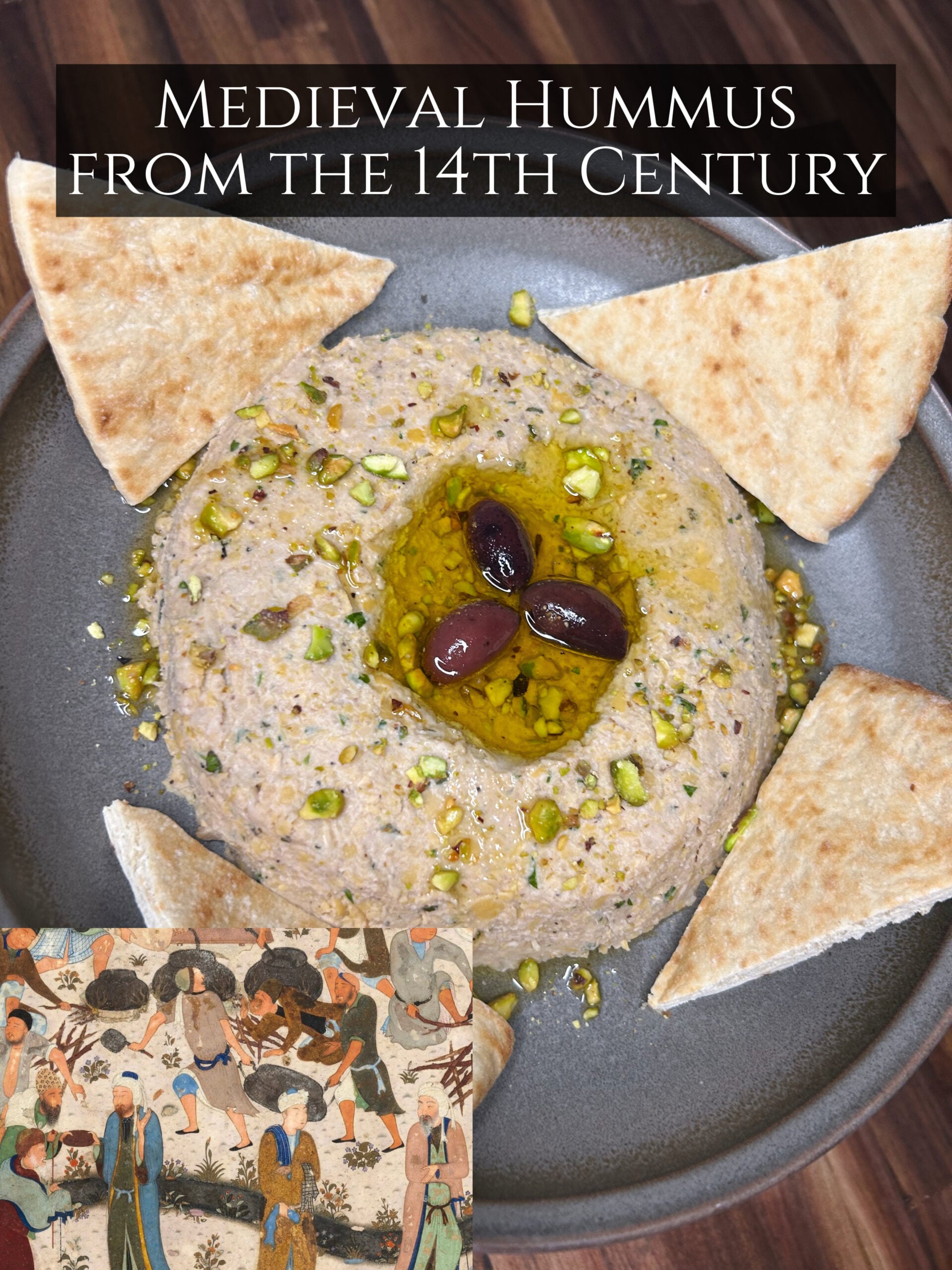 The word himmas means chickpeas, and in medieval Arab kitchens, chickpeas were a staple of both everyday cooking and formal banquets. Hummus recipes existed in many variations across the Middle East, often paired with tahini, herbs, and spices. What makes this medieval version distinct is the inclusion of walnuts, fragrant spices like caraway and cinnamon, and the tang of vinegar and lemon. It is a dish that bridges nourishment with sophistication.