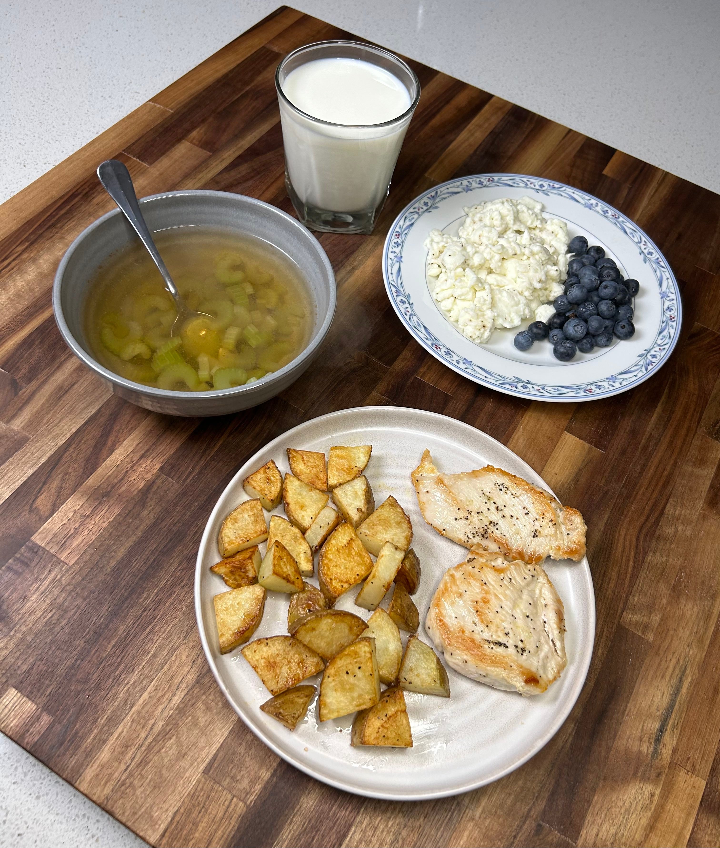 I recreated Tesla’s daily diet to see what it felt like. Breakfast was boiled egg whites with blueberries and a glass of milk. Dinner was a poached chicken breast with a potato and celery broth. Dessert was a crisp apple.