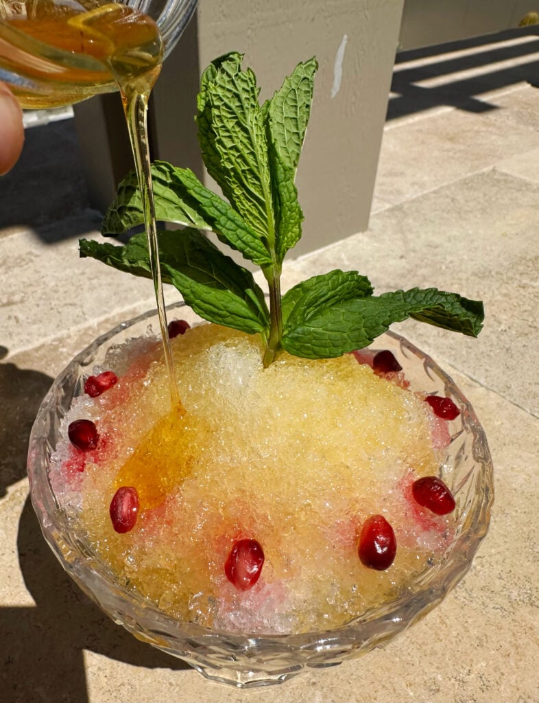 - Garnish with a fresh mint sprig pressed into the shaved ice so it stands upright.