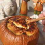 This colonial style custard baked inside a whole sugar pumpkin is one of the earliest forms of “pumpkin pie” in North America. Instead of a crust, the pumpkin itself becomes both the baking dish and part of the dessert. As the custard cooks, the pumpkin softens and sweetens, blending with the creamy interior to create a rustic, pudding like texture that feels ancient and comforting. The result is a dessert that bridges Native American agriculture, early colonial improvisation, and the later evolution of American pumpkin pie. It is rich, seasonal, and incredibly simple to make, with a flavor that feels both historic and luxurious.