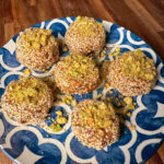 Press chopped pistachios onto the tops or roll halfway for a two-tone finish.