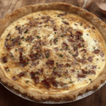 Assemble the Quiche: Pour the egg mixture into the pre-baked pie crust, spreading it evenly. Place the quiche in the preheated oven and bake for 35-40 minutes, or until the custard is set and the top is lightly golden.