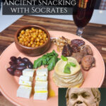 This Socratic Snackboard is a simple yet elegant recreation of what might have been enjoyed at an ancient Athenian symposium. Centered around a rustic layered plakous—a honey and cheese pastry baked between thin sheets of dough—it’s surrounded by roasted chickpeas, briny olives, soft cheese, figs, dates, and seasonal fruit. It’s a meal that celebrates balance and moderation, offering a window into the life and philosophy of Socrates himself: humble, reflective, and deeply satisfying.