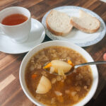 Poor man’s scouse varied widely, and in many homes, even the small bit of bacon was absent. Feel free to omit the meat entirely for an even more authentic historical recreation.