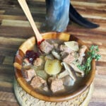 Ladle the stew directly into bowls. Add a spoonful of fresh or preserved lingonberries on top. Scatter a little dried thyme over the surface as garnish. Drink the broth. Eat with your hands if you feel historically committed to the experience.